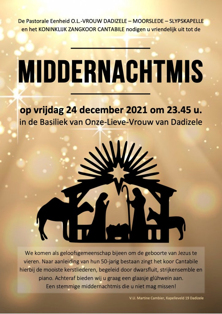 Het 4-stemmig gemengd koor ‘Cantabile’ – dat verbonden is aan de Basiliek Onze-Lieve-Vrouw-van-Dadizele – ontstond in 1971, toen voor de kerstviering vrijwilligers werden gevraagd voor de muzikale opluistering. Onder de impuls van Guido Bekaert en Emiel Tant, werd de koorwerking verdergezet. Het koor stond 30 jaar lang o.l.v. Guido Bekaert († 2025). Eind 2001 volgde Roald Bekaert zijn vader op. In 2015 nam Bart Feys het dirigeerstokje over.